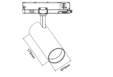 UNIVERSO Háromfázisú sínes spotlámpa 30w 2800lm CCT.kap Ra90 38° IP20 Fekete D70x175mm 5év
